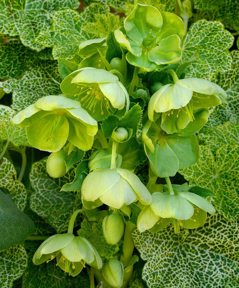 Helleborus argutifolius, also known as Corsican hellebore, is a Mediterranean species well-suited to hot, dry climates, perfect for bringing light to the edge of undergrowth. The flowers range in colour from pistachio green to greenish creamy-white. The fact that they are tilted downwards, allowing water to slide off like an umbrella, is to protect the heart of the flower, which could otherwise rot.