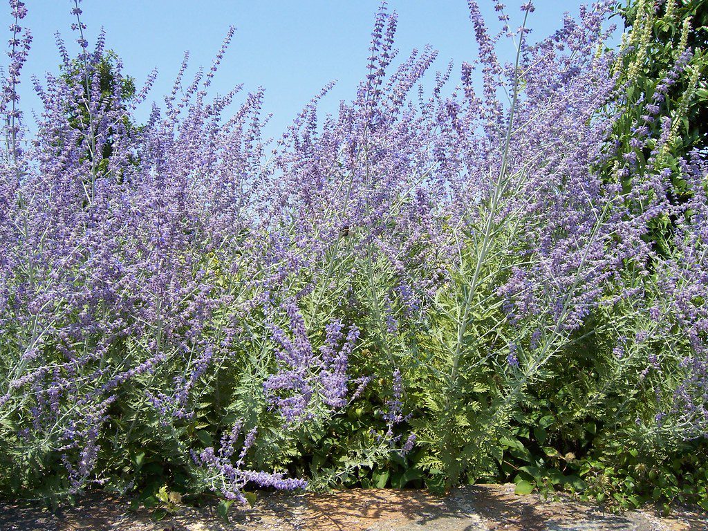 Russian sage, also known as Afghan lavender, is a small shrub grown for its exceptionally generous lavender-blue flowers and aromatic foliage. Perovskia atriplicifolia ‘Blue Spire’ is a more vigorous cultivar than its parents.